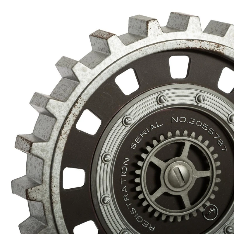 Cette horloge très originale s’anime durant son fonctionnement. Style industriel très moderne.