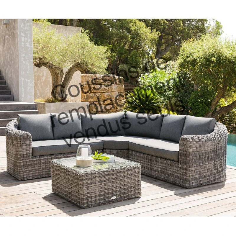 Dimensions : 4 coussins dossier 2 places 49×40 cm + 2 coussins dossier angle 71×40 cm