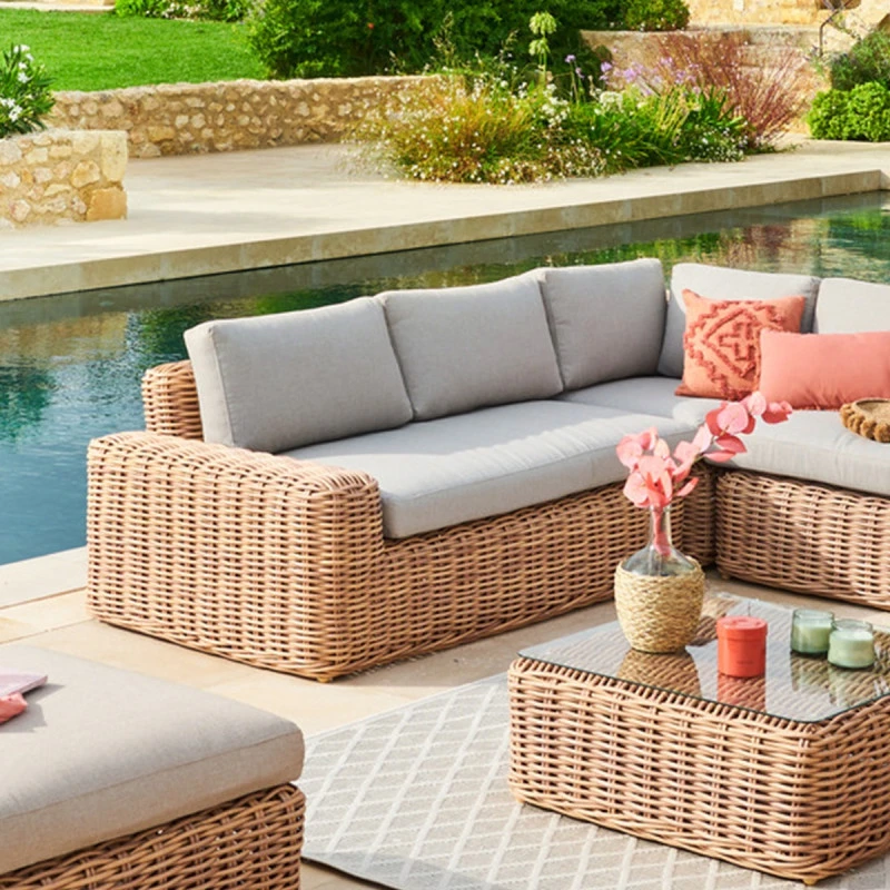 Composez votre salon de jardin sur-mesure avec la collection Savinia coloris Tahini de la marque Hespéride.