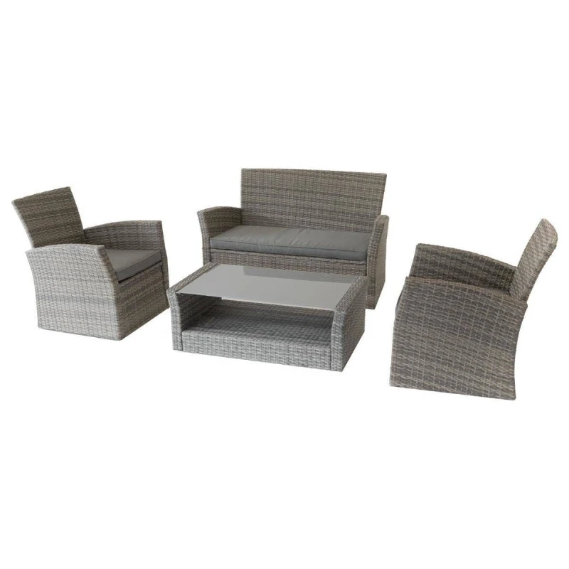 Le salon dispose d’une structure en acier traité époxy antirouille et d’un habillage en résine tressée résistant aux UV.