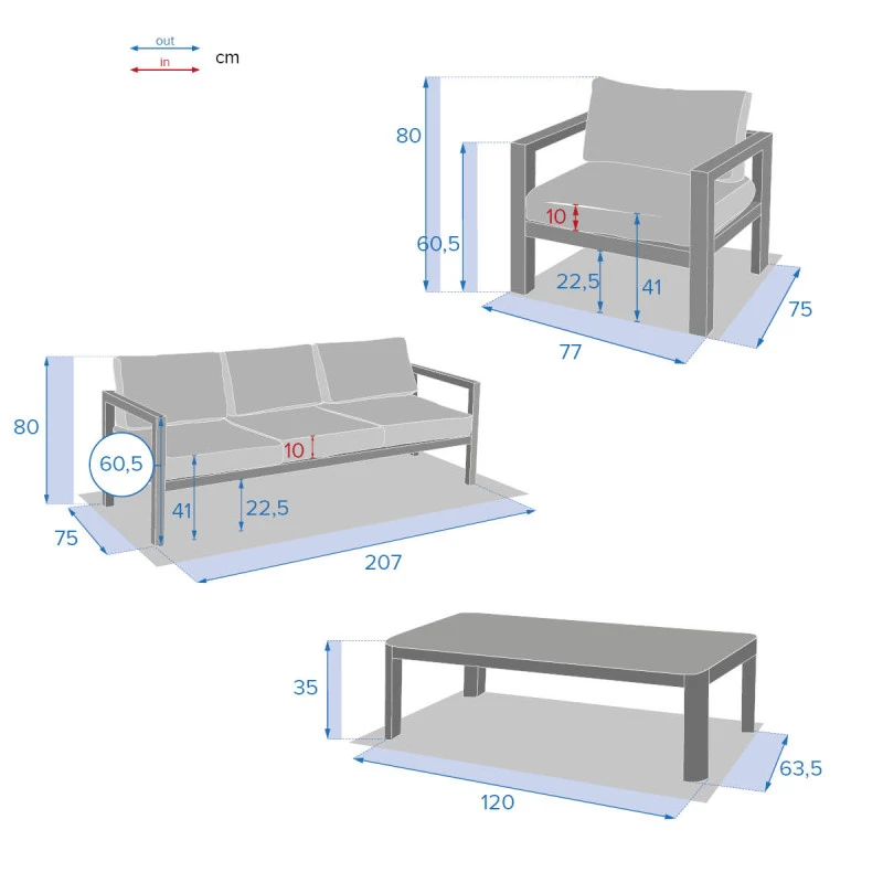Les coussins en polyester 220 g/m² sont traité déperlants afin de faciliter l’élimination des petites pluies. Ils sont également déhoussables.