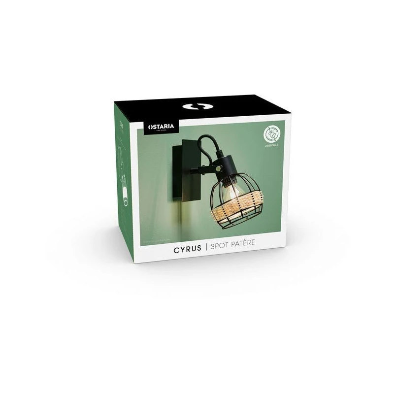 Réhaussée d’une touche en rotin, le spot mural apportera lumière et style.