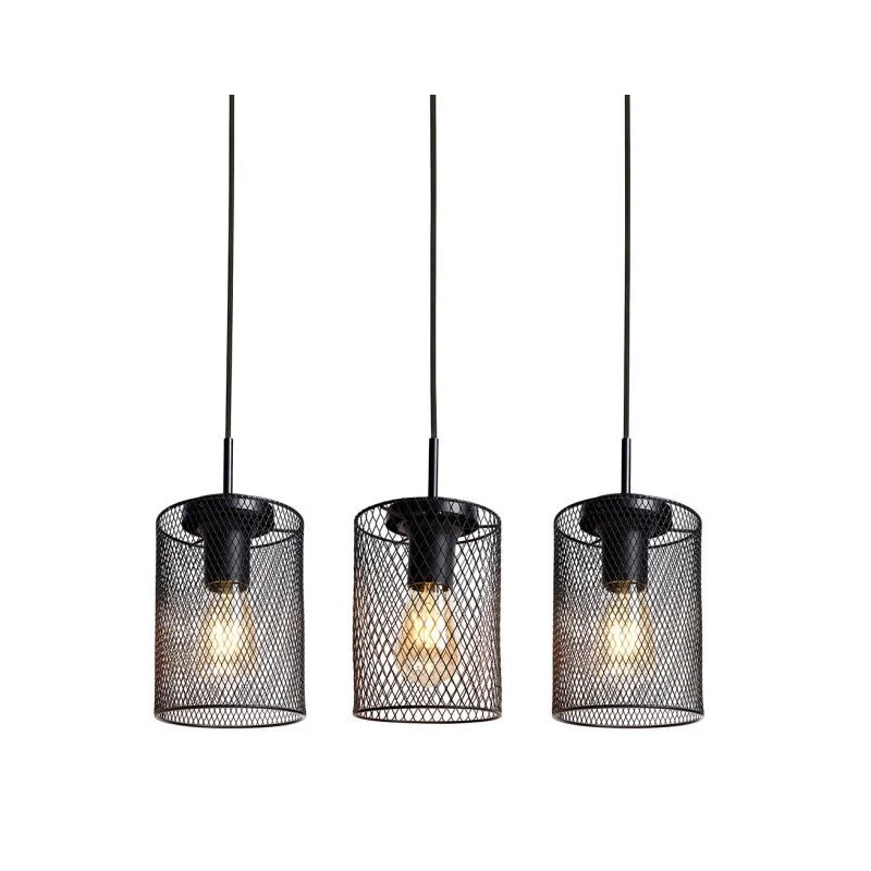 Optez pour le style industriel avec ce luminaire rampe composé de 3 abat-jours en grillage noir de la marque Ostaria.